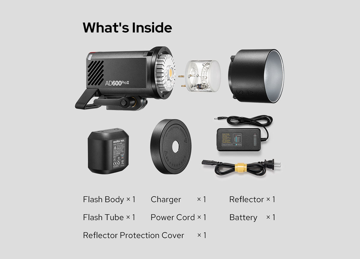 Tiếp nối hiệu suất đáng tin cậy của AD600Pro, AD600ProII có thời gian tái chế nhanh, chỉ từ 0,01 đến 0,9 giây. Đèn cũng hỗ trợ Đồng bộ tốc độ cao (HSS) lên đến 1/8000 giây. Với Hệ thống không dây Godox 2.4G, AD600ProII tích hợp mượt mà với các hệ thống flash TTL tự động cho nhiều thương hiệu máy ảnh, bao gồm Canon E-TTLII, Nikon i-TTL, Sony, Olympus, Panasonic, FUJIFILM, Pentax, và Leica.