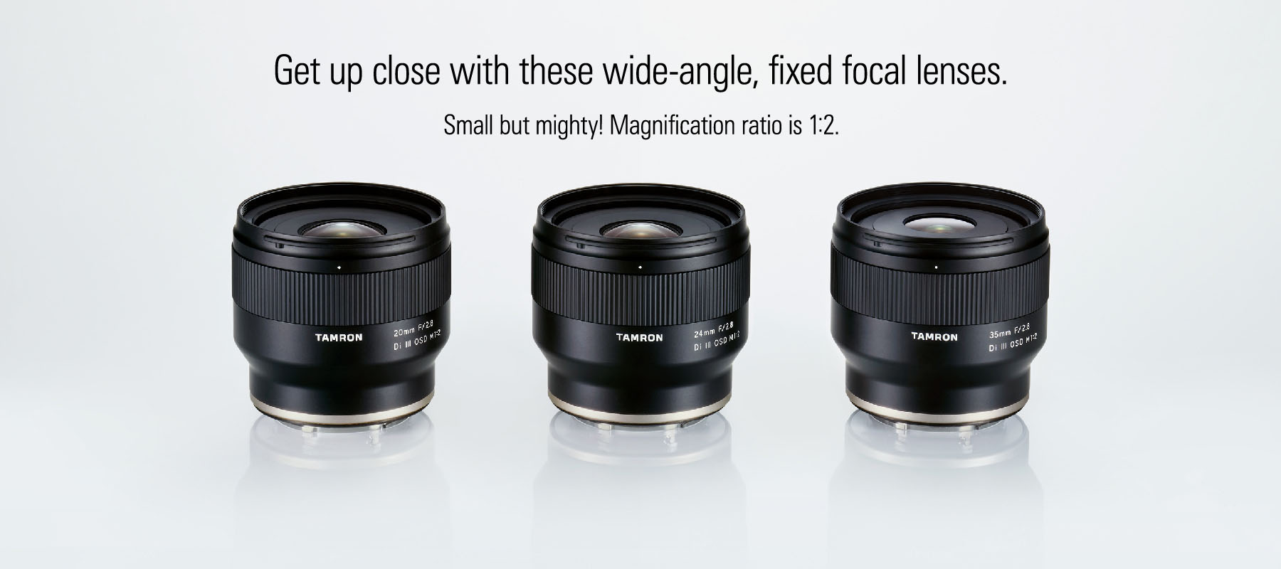 Những ống kính mới có khả năng lấy nét gần nhất - MOD lần lượt là 20 mm là 0,11m / 24mm là 0,12m và 35mm-0,15m. Thêm vào đó, tỷ lệ phóng đại tối đa cho cả ba là 1: 2. Hiệu suất vượt trội này cho phép người dùng tạo ra các bố cục nhấn mạnh phối cảnh ,đối tượng gần nhất sẽ lớn hơn và đối tượng ở xa sẽ nhỏ hơn.