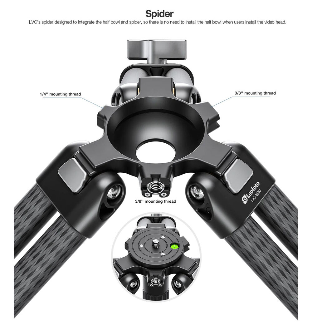 Leofoto LVC-253C với đế cân bằng được thiết kế cho các nhà làm phim và videographer chuyên nghiệp. LVC-253C có một chén bi 75mm tích hợp, leveling base có thể điều chỉnh để sử dụng ở mức vừa hoặc sát mặt đất.